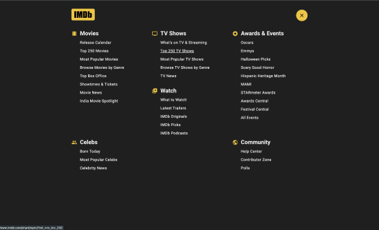 After trying to search for the TV show in the search bar, the user clicked on the menu and discovered the option for Top 250 TV Shows. All of the information was found quickly after clicking on the menu.