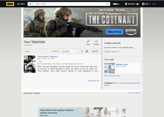 This was the hardest task that the user was asked to complete. There is no button for this in th menu, which is where the user searched initially. After returning to the homepage the user was still unsure where to look until they clicked on their profile. Under their profile they found a button that led to their lists, but they did not see the button that was for creating new lists because it blended in with an advertisement.